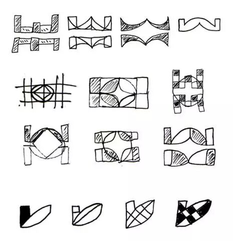 首先,用线条来发展Logo,但我不喜欢用线来设计,因为这将无法有足够的颜色变化。以下,是我发展的想法,变成二维跟交错的概念,发展出不同的元素,这样子就能填补色彩了。